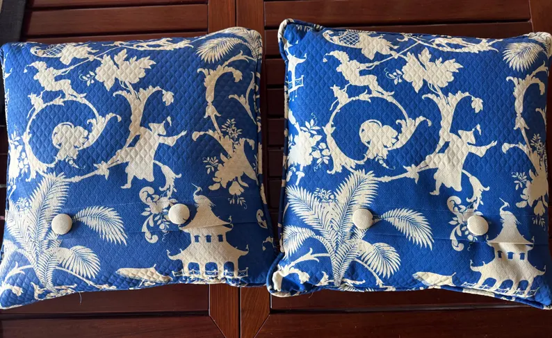 9 Custom Quilted Chinoiserie Chintz Pillows and Bed Skirt