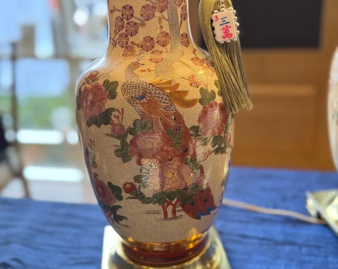 PAIR Antique Chinese Chinoiserie Lamps with Brass Ming bases