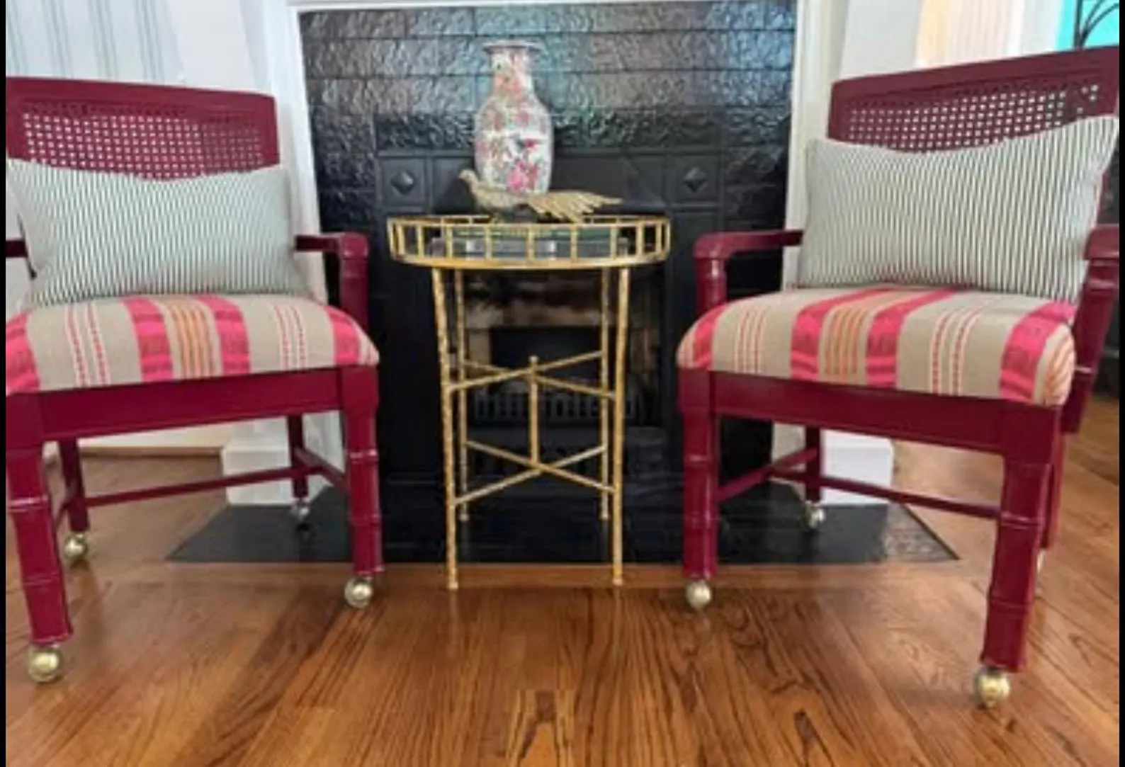 PAIR Bamboo Cranberry Gloss Cane Chairs