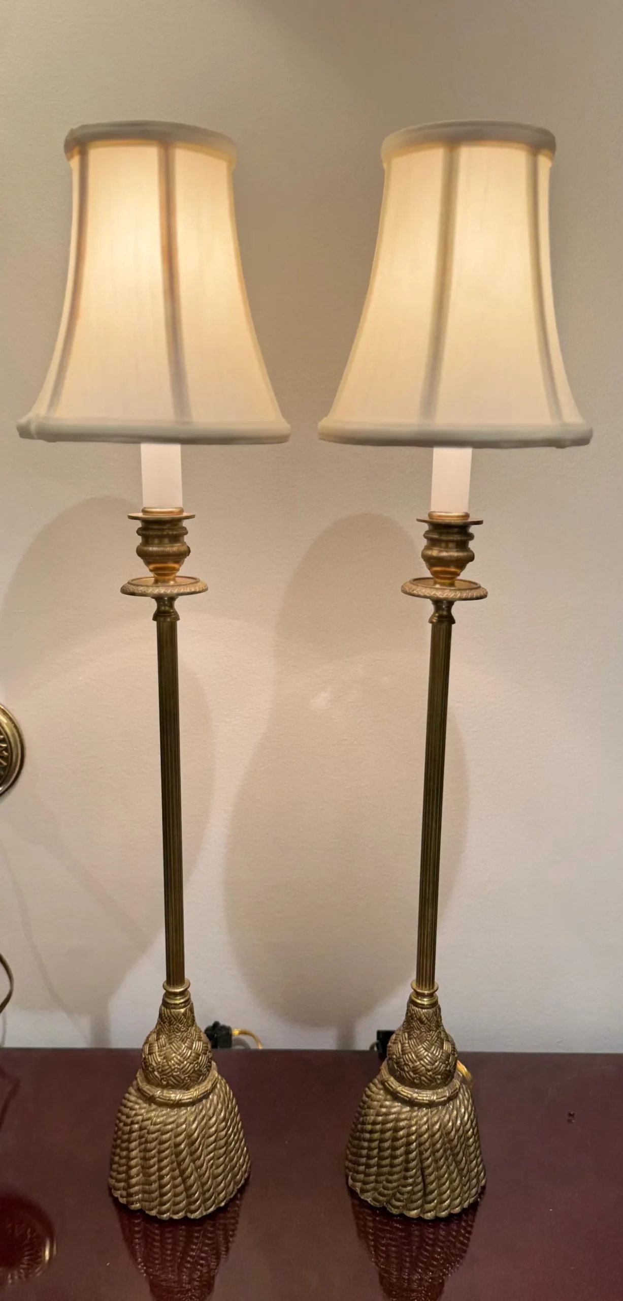 PAIR Antique Chinese Chinoiserie Lamps with Brass Ming bases